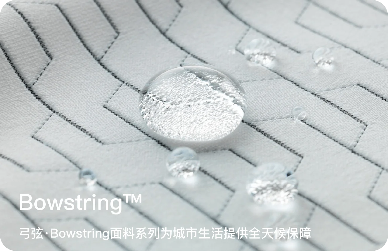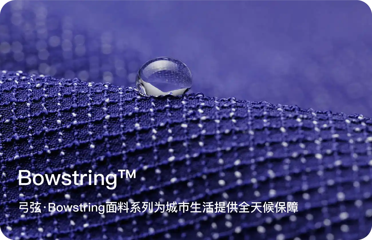 Bowstring™为城市生活提供全方位的保障。我们的面料具有优越的功能性,包括透气、防水、透湿、防风、轻量化等技术。采用环保无溶剂胶,内层贴肤设计,既舒适又环保。我们支持多场景的服装品牌设计开发,提供定制外层、Bowstring™纳米多孔膜和贴肤内层定制。